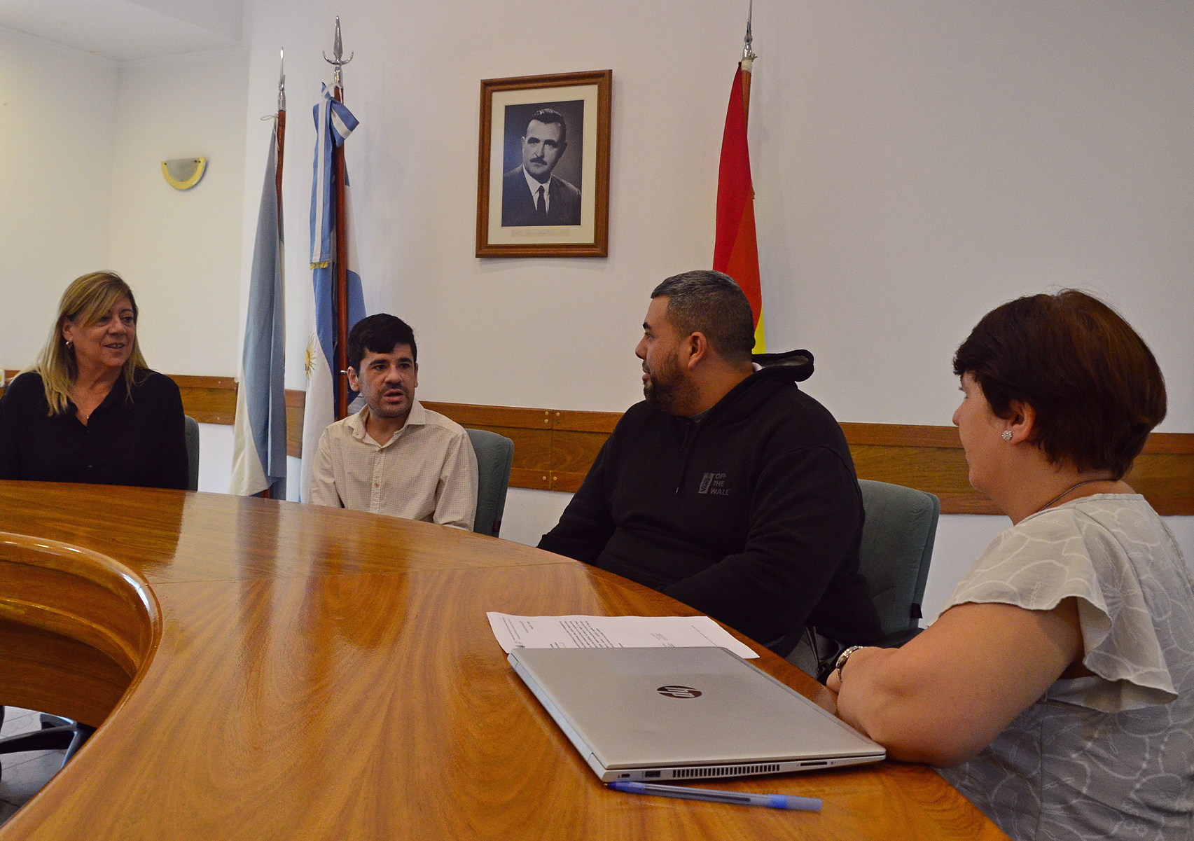 Este jueves la CPE donó una notebook a la Coopecad, en un breve acto que se realizó en el salón del Consejo de Administración. El presidente del Consejo, Manuel Simpson, junto a la secretaria Silvina Reynoso y la consejera María Eugenia González, recibieron a Alan González, presidente de la cooperativa que nuclea a los trabajadores relacionados a la cadetería.